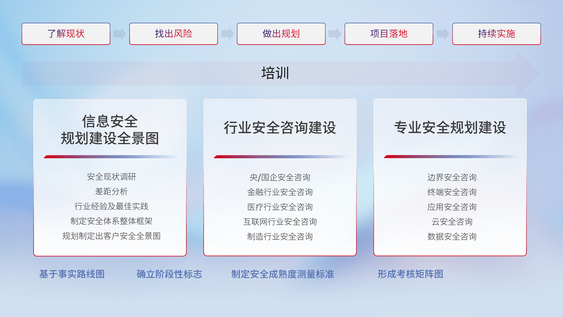 通过专业的法律咨询解读、、、、合规架构体现、、差异化解决方案、、、测试实施支持等服务,,,为客户量身打造等保合规体系。。。